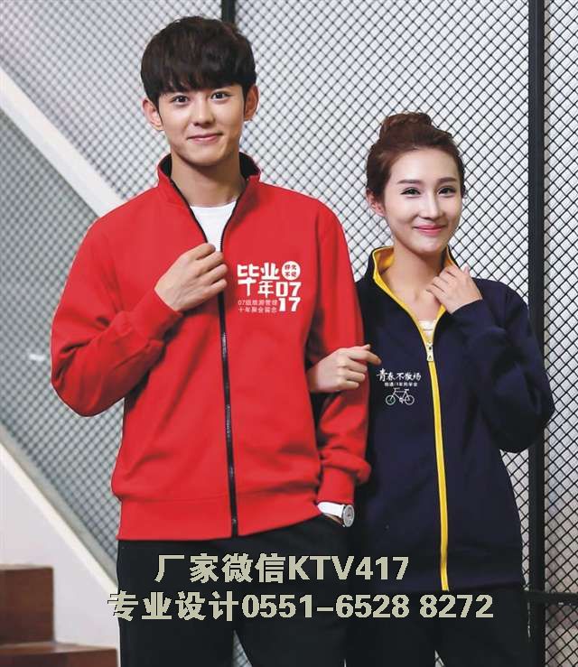 畢業10年同學會服裝冬季,紅色聚會衛衣圖片,紅色的立領衛衣,左胸印上畢業10年,2007-2017.青春不散場。時代元素自行車。