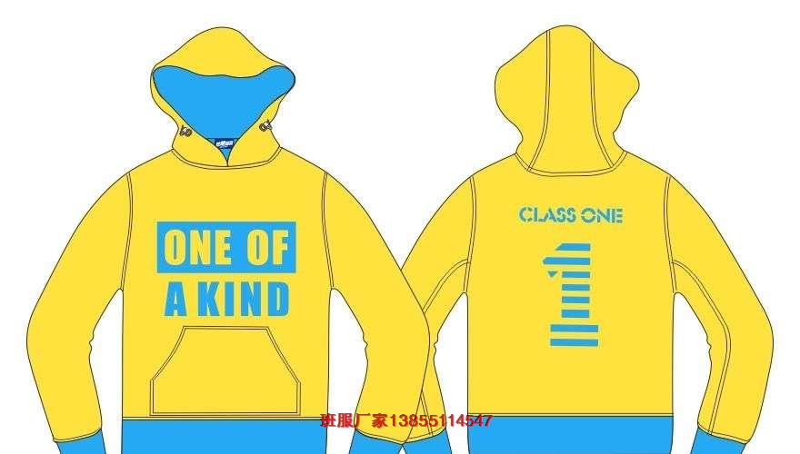 一班班服好看的,采用的是黃色套頭衛衣,前后印刷CLASS ONE