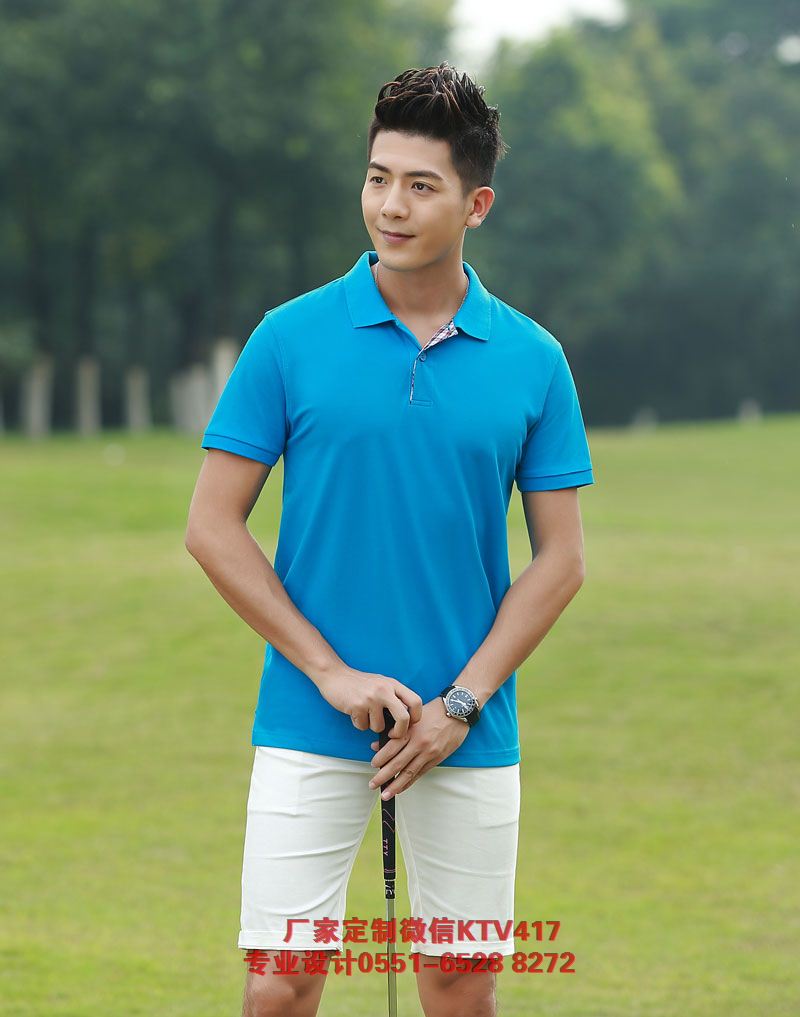 湖藍色韓版翻領T恤衫,采用絲光棉面料,做工講究,用料考究。高檔定制首選。品質網購,選擇夢瑤服裝。這款衣服分男女款,男士的合體,女士的收腰,凸顯女人的玲瓏曲線