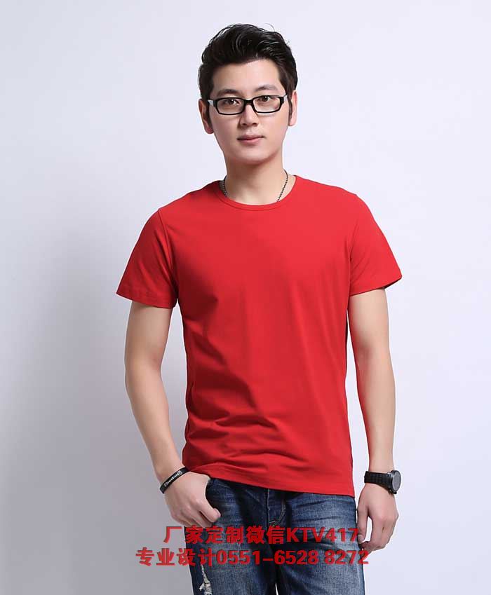 大紅色圓領文化衫,短袖純棉T恤,采用高密度澳洲進口棉,厚薄適中,做工精細。