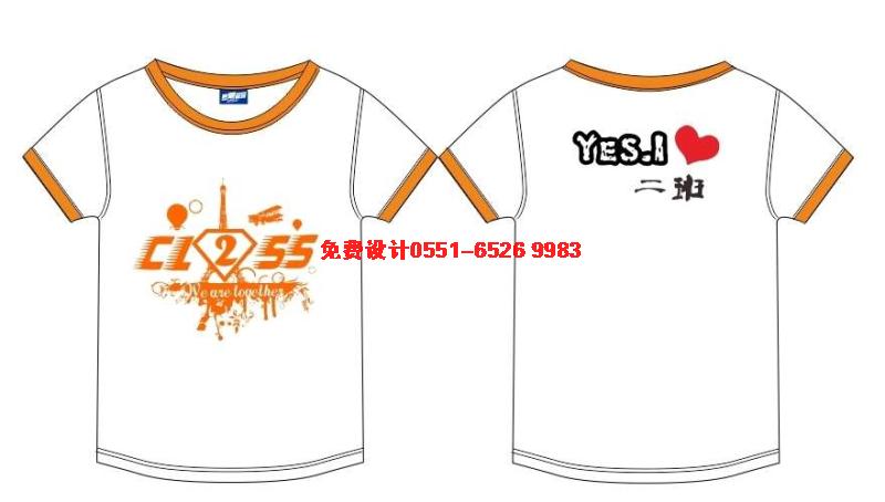 白色鑲紅邊班服,前面是圖案鏤空裝潢專業,后面是YES.1愛心CLASSS 2