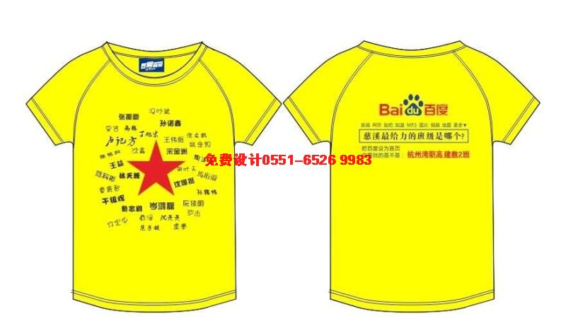 這款黃色班服,正面采用大面積的班級所有成員名字,中間圍繞在紅色的五角星邊。后面是百度慈溪最給力的班級是哪個?