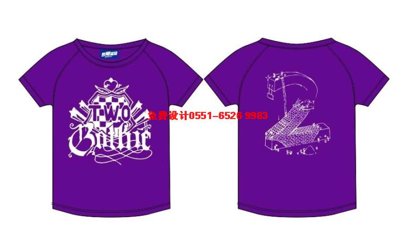 這是紫色的圓領T恤班服,圖案采用白色環保漿料印刷?此苼y,其實是個性張揚的表現。后面是立體數字2