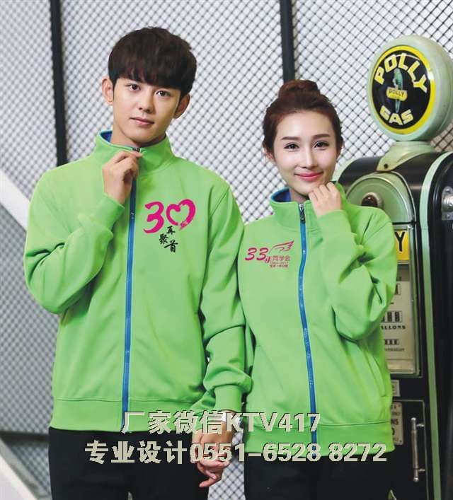 畢業33年綠色同學會衛衣,綠色聚會外套,班服衛衣這款畢業33年同學會服裝,由立領衛衣印字而成。這款綠色的衛衣,采用拉鏈開衫,無帽。很符合現在人時尚的個性的需要。綠色的外套,藍色的里料很時尚。也可兩面穿。
