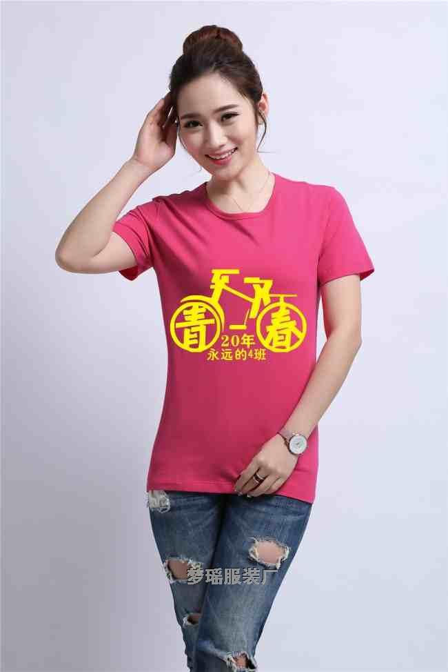 這款同學聚會文化衫圖案(致青春)20年,設計思路是玫紅色,搭配黃色,玫紅色相比大紅色來說不土,顏色雅。這款致青春20的圖案采用的是致青春變形成自行車,青春兩個字,分別在2個圓圈里,代表自行車的2個輪子,致字變成成自行車的車把和大扛,連在一起就是活生生的自行車。自行車的下面是20年,下面是班級名稱永遠的4班?偨Y:致青春這3個字,即是字也是圖案,設計的甚是巧,可見,我廠設計師設計水平。