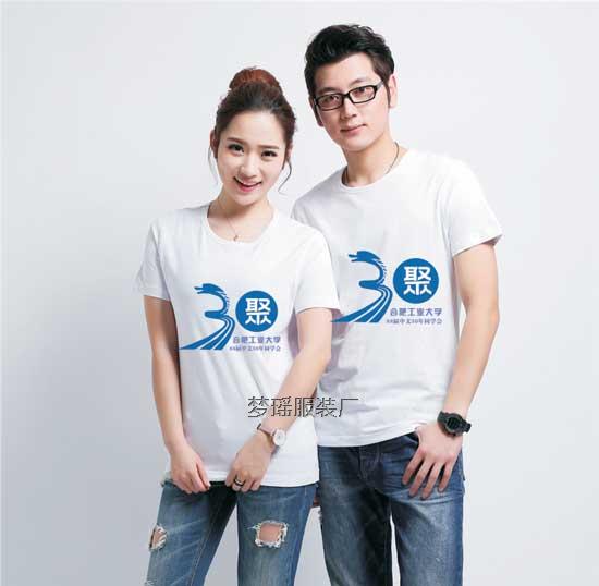 這款30年同學會文化衫圖案,采用的是圓領短袖純白文化衫,圖案采用藍色的印刷,圖案采用龍為變形元素,使龍變形為數字3,右邊圖案為圓形,代表0,合起來就是數字30,設計的很巧妙,右邊的圓形鏤空出漢字“聚”,下面是合肥工業大學,最下面是班級名稱XX屆XX專業30年同學會,圖案設計具有流線型,線條粗細剛好,文化衫圖案整體呈現藍色,科技感十足。使文化衫簡而不俗。