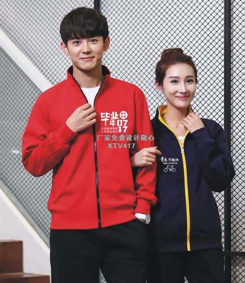 聚會衛衣分為拉鏈,套頭款式。聚會拉鏈衛衣按分純色款式和拼色款。純色款就是全衣一個顏色,通體白色或者紅色。拼色款衛衣就是袖子或者領間有不同于衛衣底色的色塊或者色條。拼色款同學聚會衛衣,款式新,受到同學們的青睞。衛衣保暖聚會同學們多數都選擇,定制一件加厚保暖抓絨衛衣。定制聚會衛衣印刷聚會相關圖片或者印字,即是一件衣服,又是一件紀念品,一石二鳥。