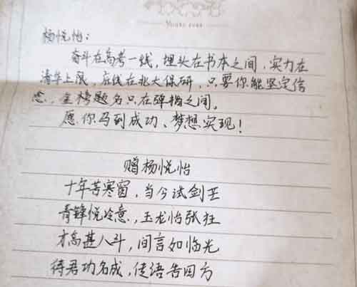 但他相信彼此之間的聯系一定不會斷感情永遠在“我知道他喜歡詩,以前就會寫點沒想到他會在高考如此緊張的時候抽出時間做成這件事”高三(35)班班主任說
