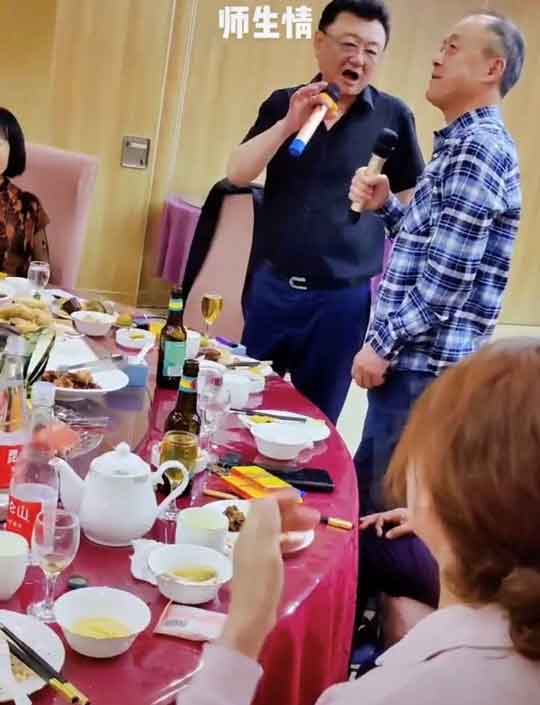 可以看到,與在臺上西裝革履相似,私下聚會時的王寧雖然穿著略顯簡單,但數十年的主持人生涯已經讓他形成習慣,溫文爾雅的氣質依舊在線,與其他同學休閑的穿著形成明顯反差,合影時與老師一起站在C位,尤為顯眼。